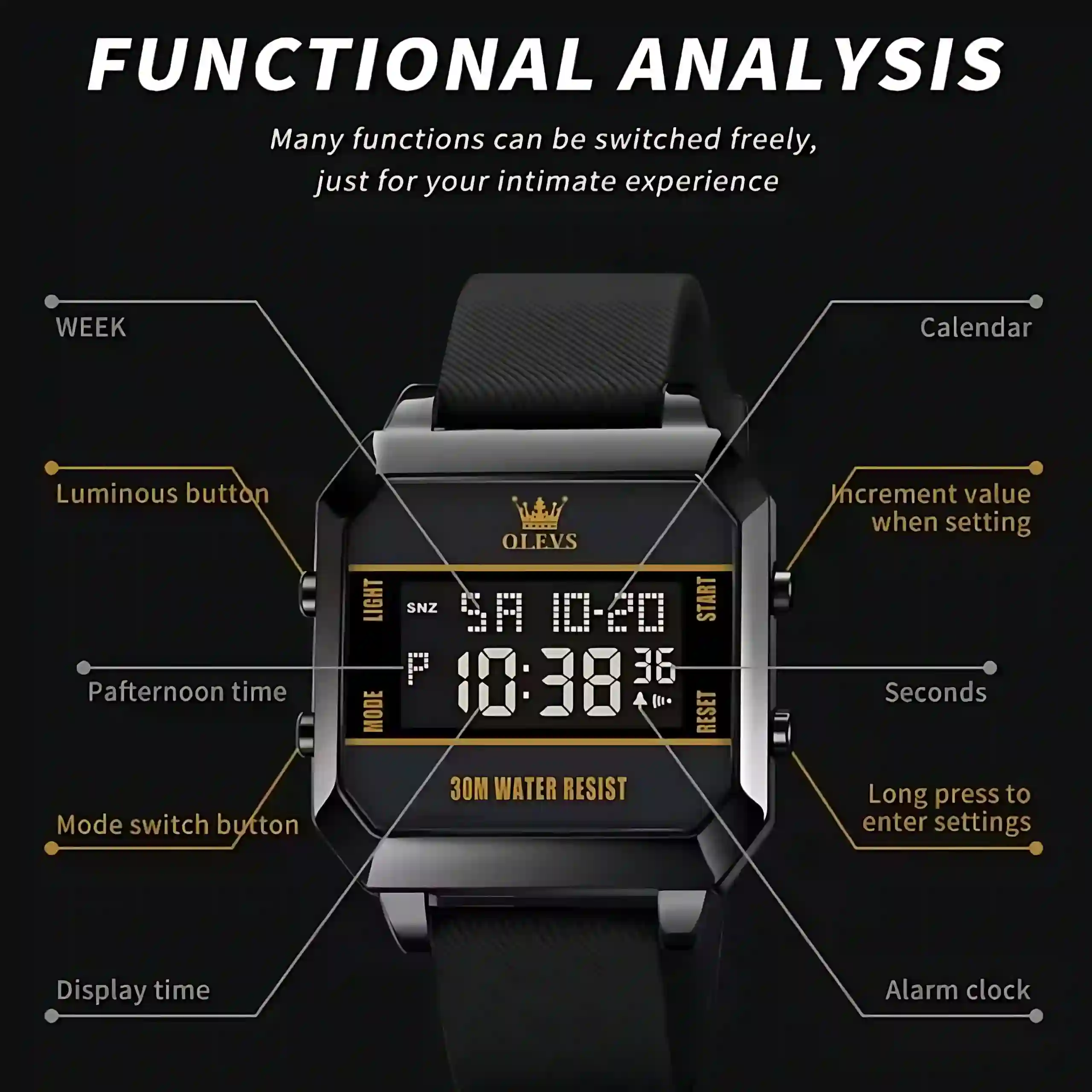You choose the Olevs 1103 Men Watch because it offers versatility, durability, and affordability. The digital display provides easy readability, while the waterproof rating ensures resilience in daily activities. Its lightweight silicone strap makes it perfect for sports, casual wear, or outdoor adventures. As part of the Olevs watch bd collection, this model stands out for its balance of modern design and practical features, making it a smart choice for men who value both fashion and function.