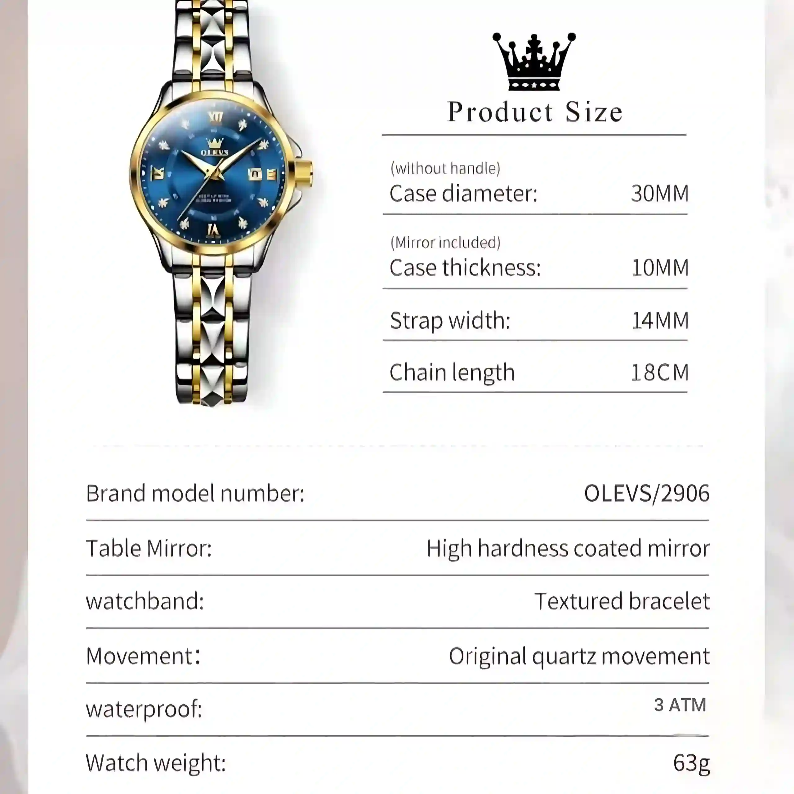 - Brand & Model: Olevs 2906 Women Watch