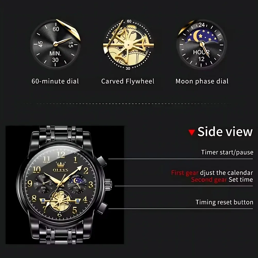 Choose the Olevs 2900 Men Chronograph today. Elevate your style, enjoy reliable performance, and showcase a brand that blends tradition with innovation.